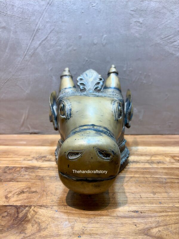 Brass Nandi Head in Vintage Finish – Sacred Symbol of Devotion and Strength