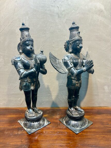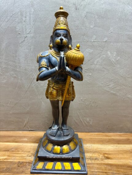 Brass Hanuman Idol – Namaste Pose in Antique Finish