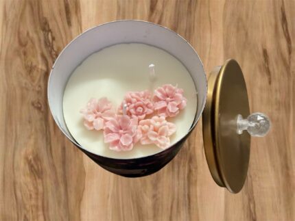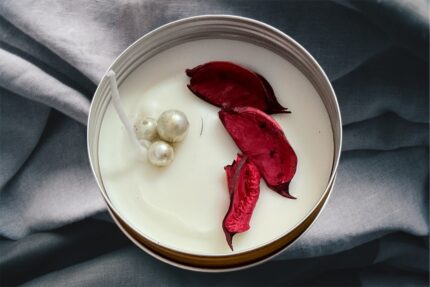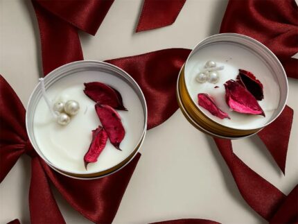 Romantic Soy Wax Candle with Rose Petals & Pearls – Handcrafted, Vegan, Long-Lasting, Perfect for Gifting & Decor