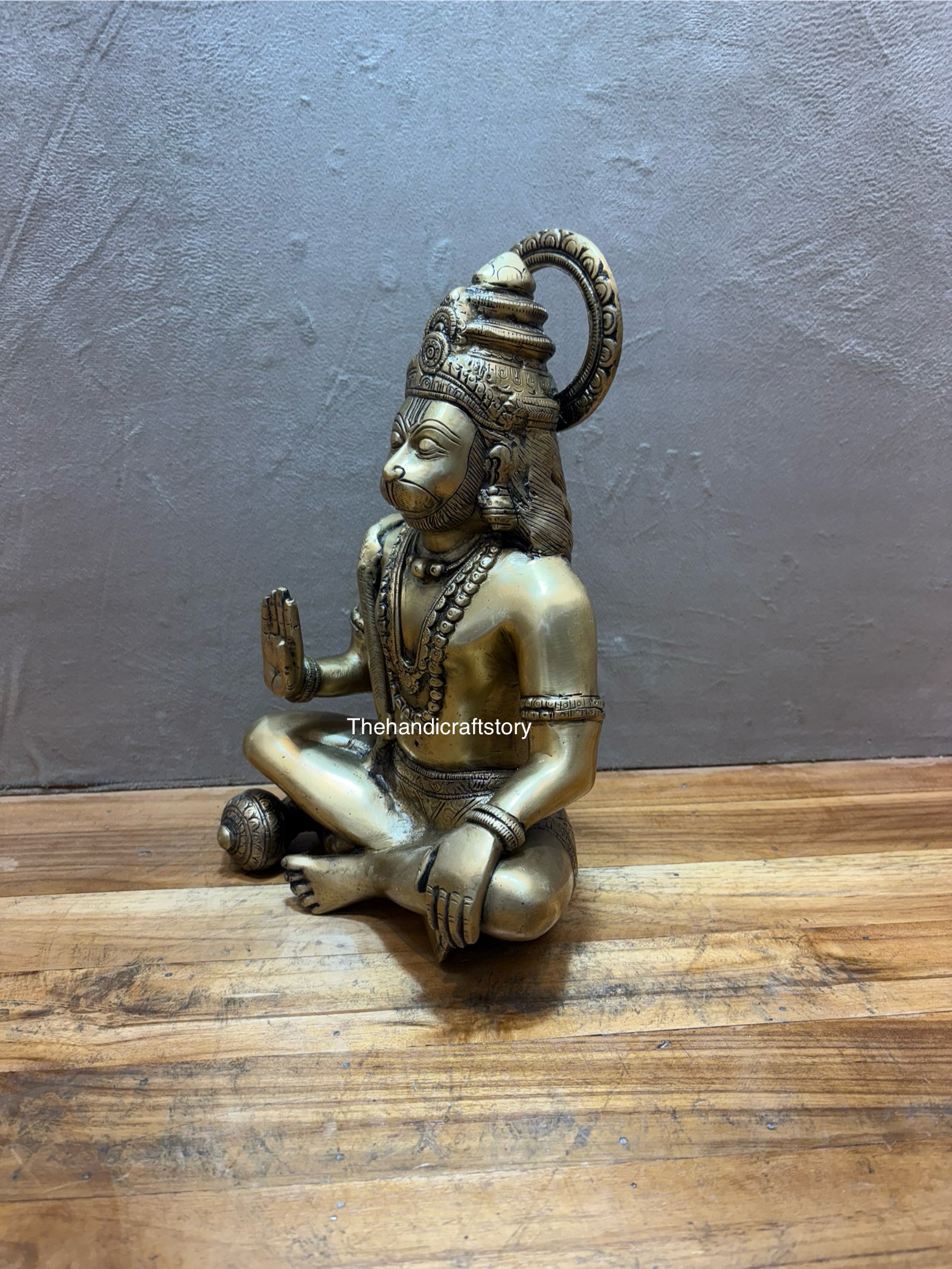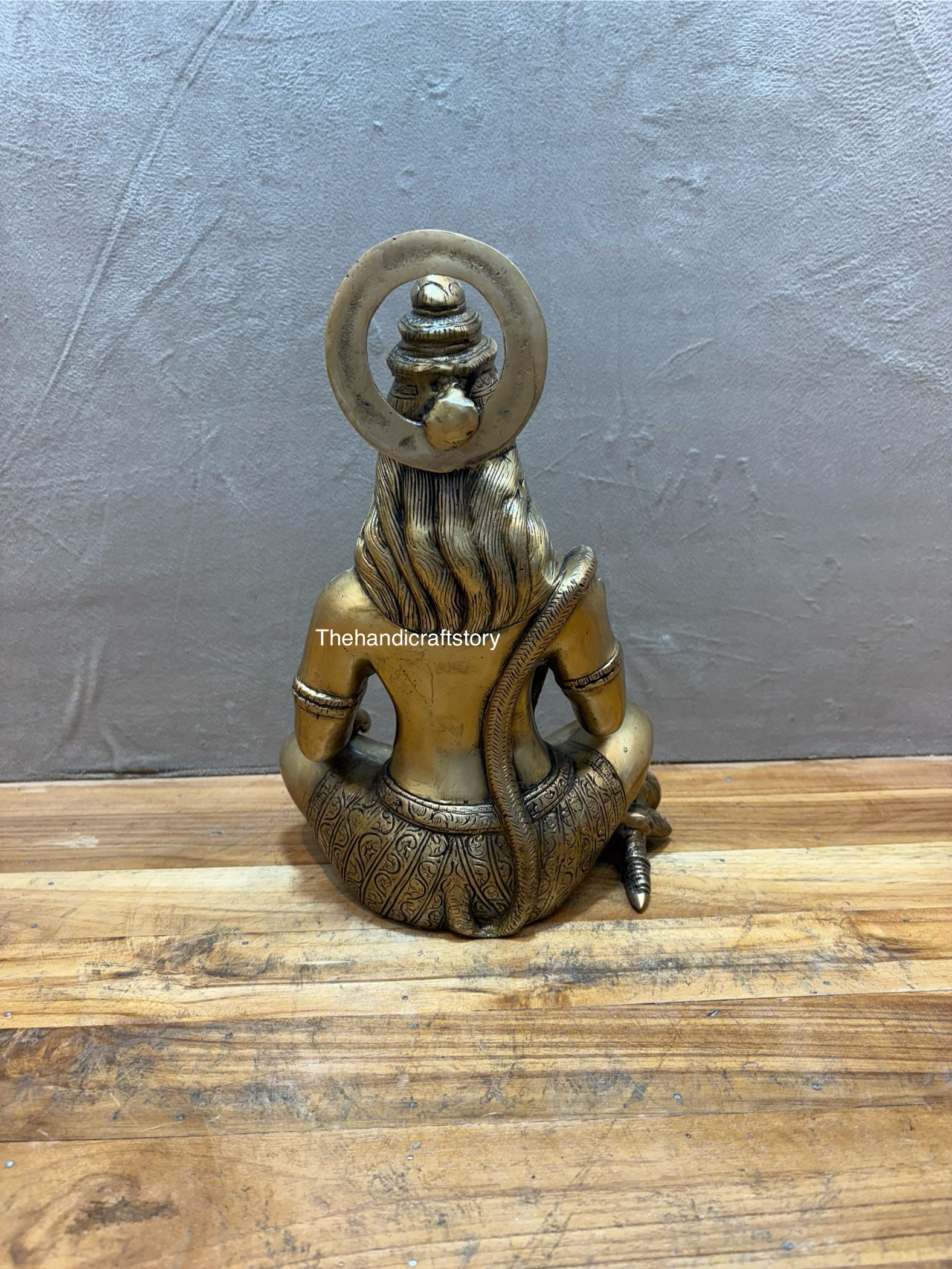 Brass Hanuman Idol in Sitting Pose – Antique Finish