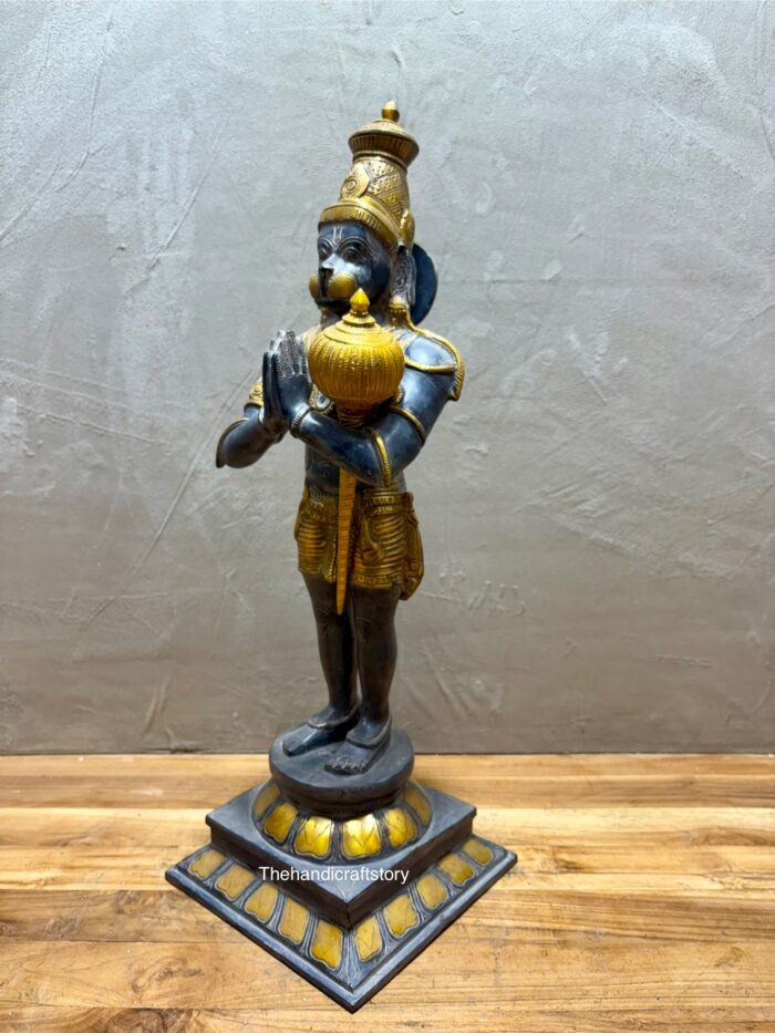• Depicts Lord Hanuman in a humble standing posture with folded hands