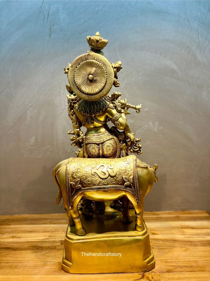 Brass Krishna with Cow Statue – Symbol of Divine Love, Compassion & Harmony