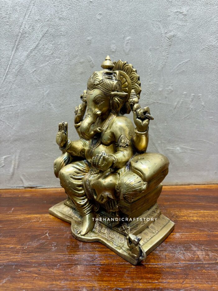 Categories: All Products, Brass Ganesha, Brass Statues Tags: artisan brass decor, brass ganesha idol, brass hindu god idol, brass sculpture for altar, ganapati statue for mandir, ganesha for home temple, ganesha on throne, ganpati murti brass, golden finish brass idol, handmade ganesha idol, indian brass statue, pooja room decor, religious decor idol, royal throne ganesha, singhasan ganesh murti, spiritual gift india, thehandicraftstory ganesha, traditional ganesha sculpture, vastu ganesh idol Brand: The Handicraft Story