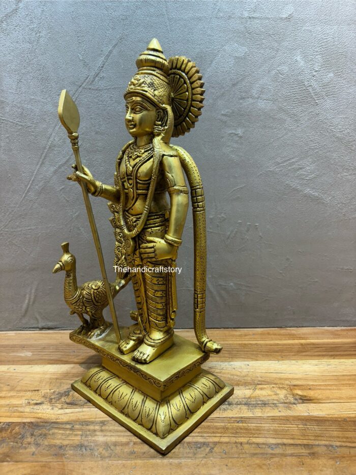 • Depicts Lord Murugan (Kartikeya) standing gracefully beside his vahana, the peacock