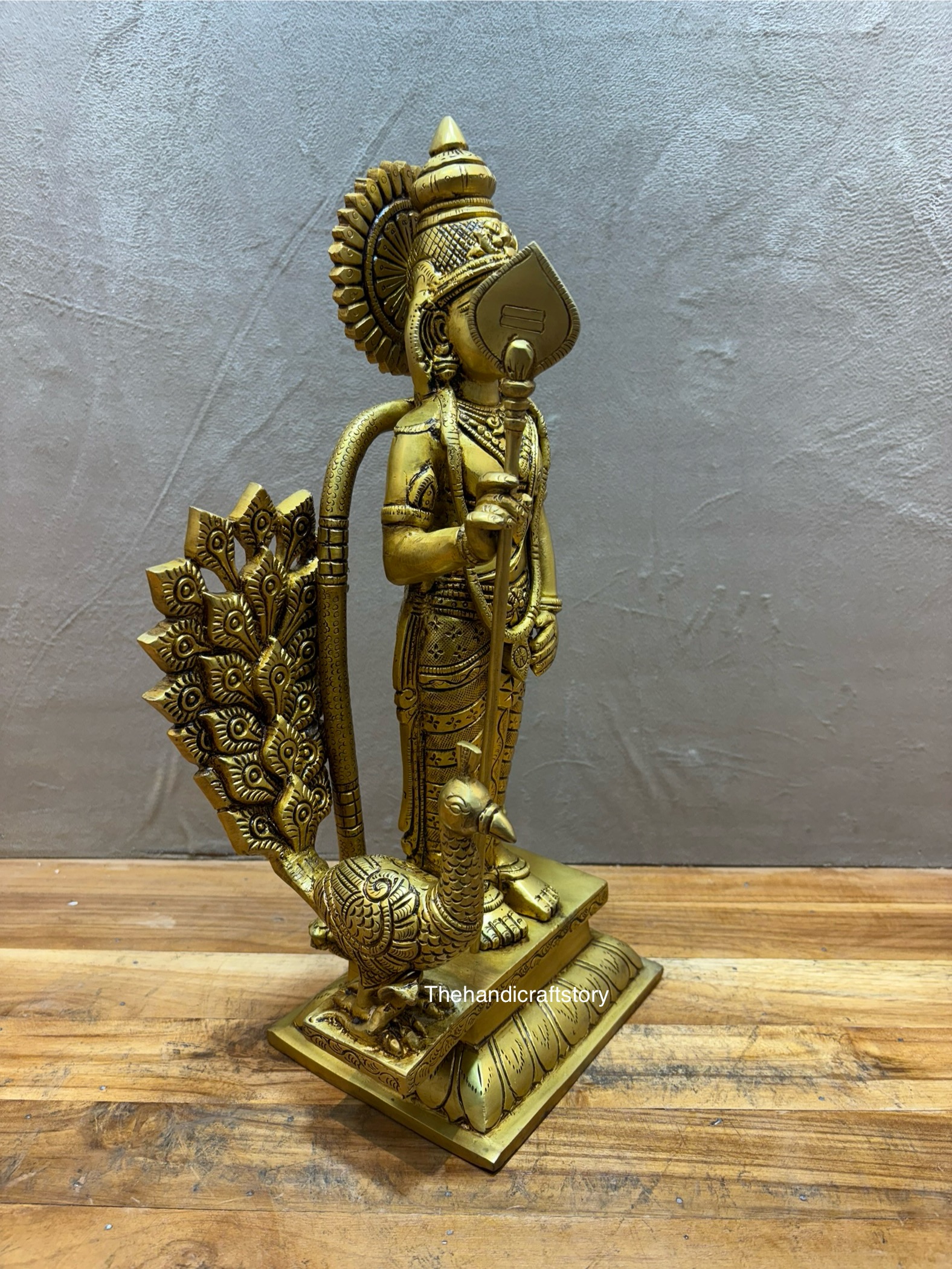 Home Brass Statues Brass Murgan Brass Lord Murugan Statue with Peacock – Golden Finish