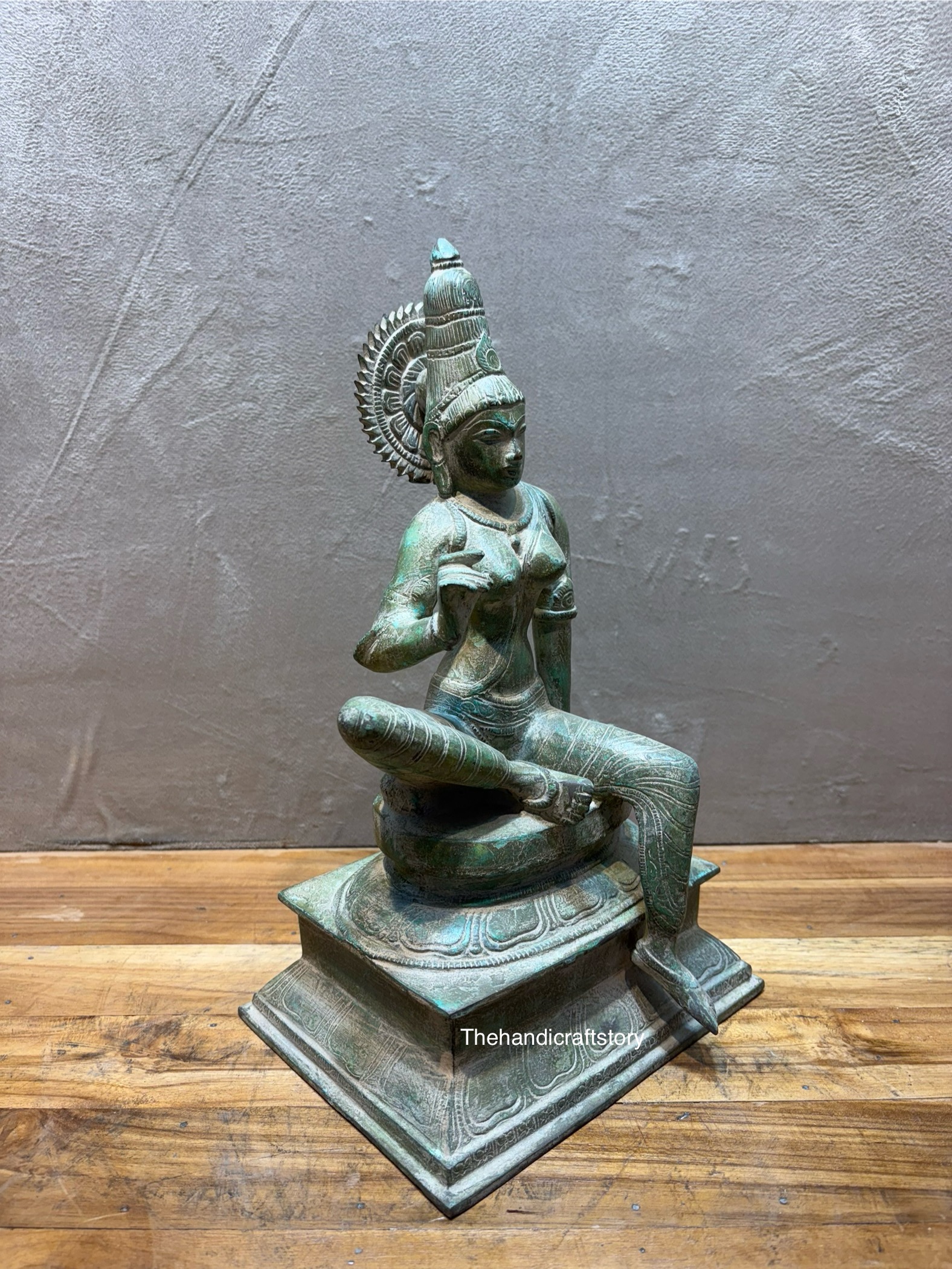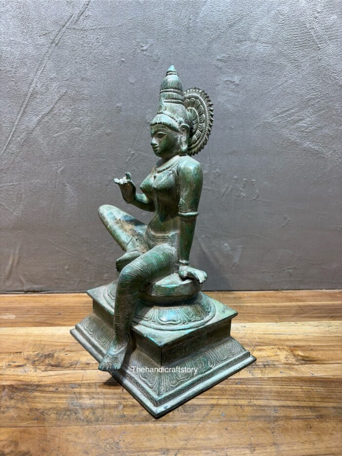 Home Brass Statues Brass Parvati Brass Parvati Statue in Vintage Green Finish – Embodiment of Divine Grace and Strength