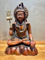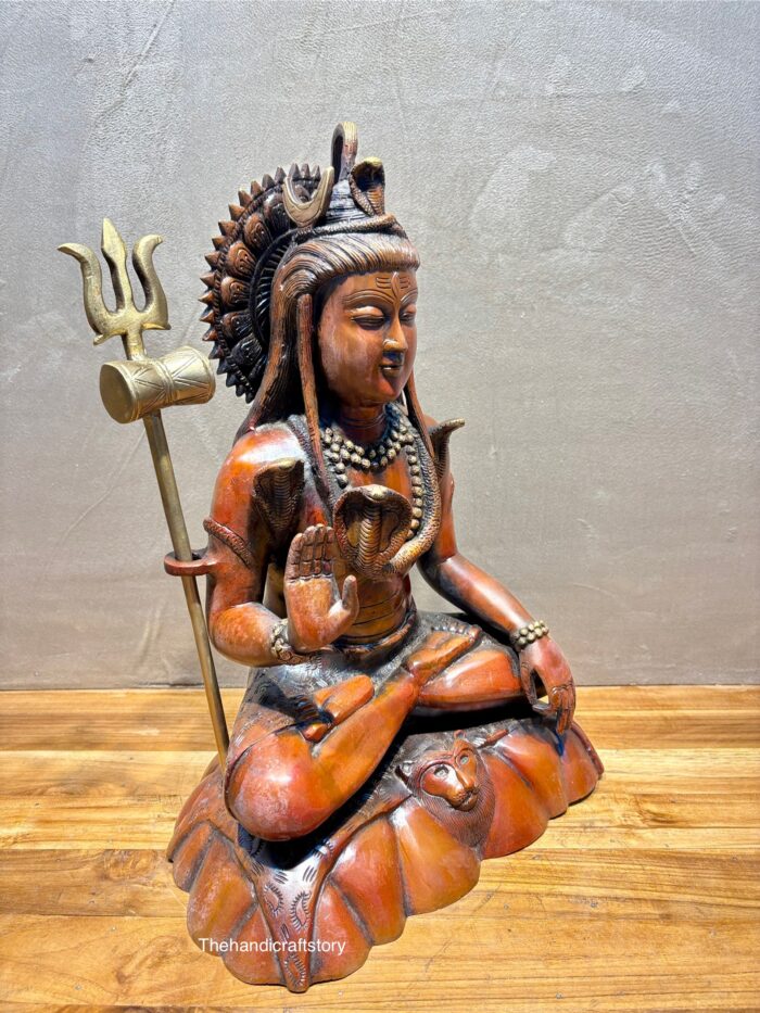 This handcrafted brass idol of Lord Shiva reflects divine authority and grace. Seated with his trident and damru, it represents the eternal yogi who governs the forces of destruction and regeneration. A perfect addition to homes seeking peace and divine strength.