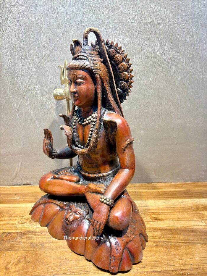 Brass Lord Shiva Statue in Sitting Pose – Symbol of Meditation, Power, and Grace