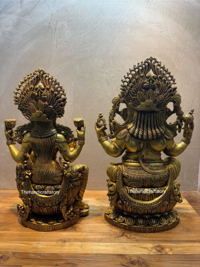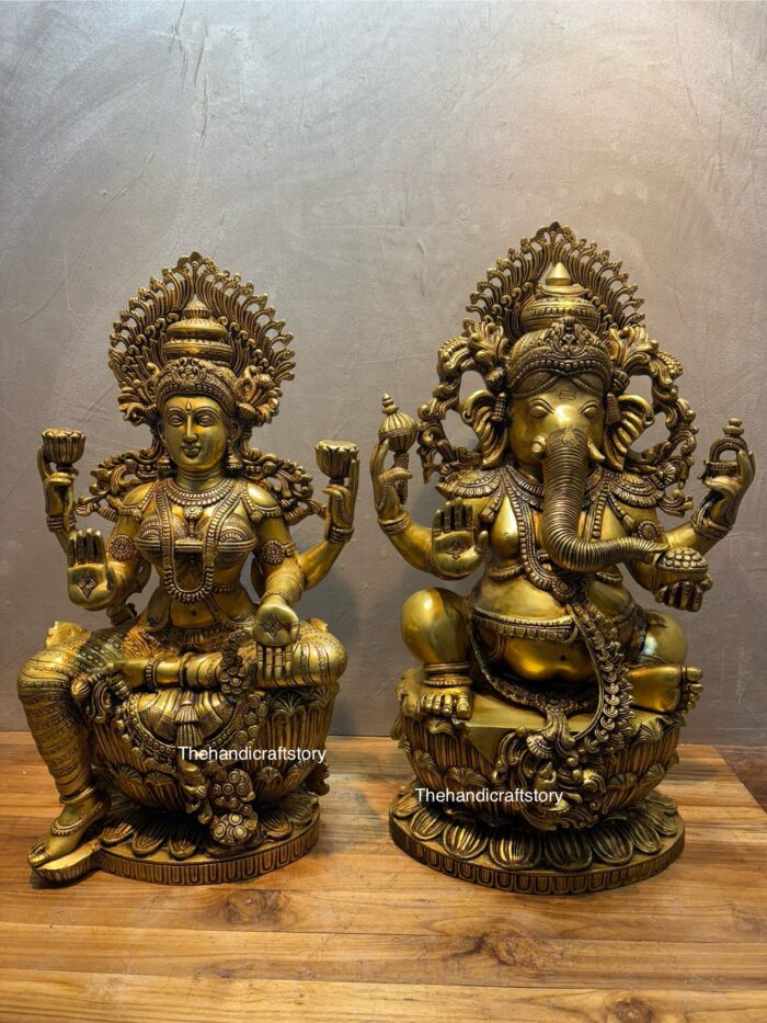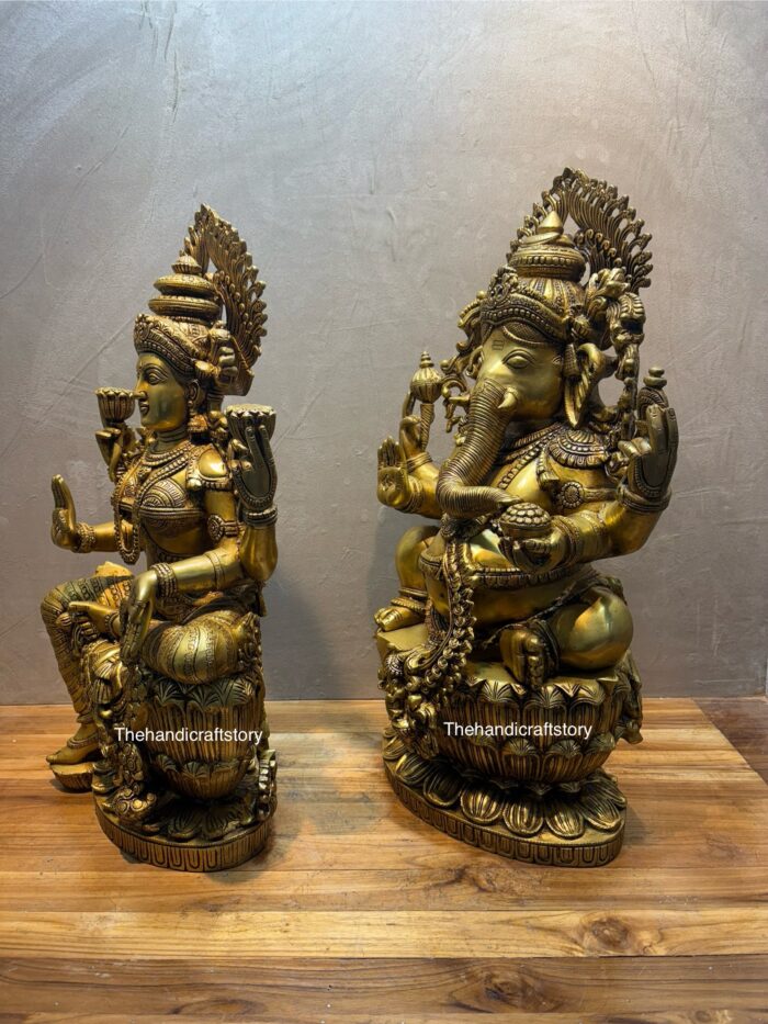 Brass Superfine Ganesha Lakshmi Idol Set – Auspicious Pair for Prosperity & Wisdom