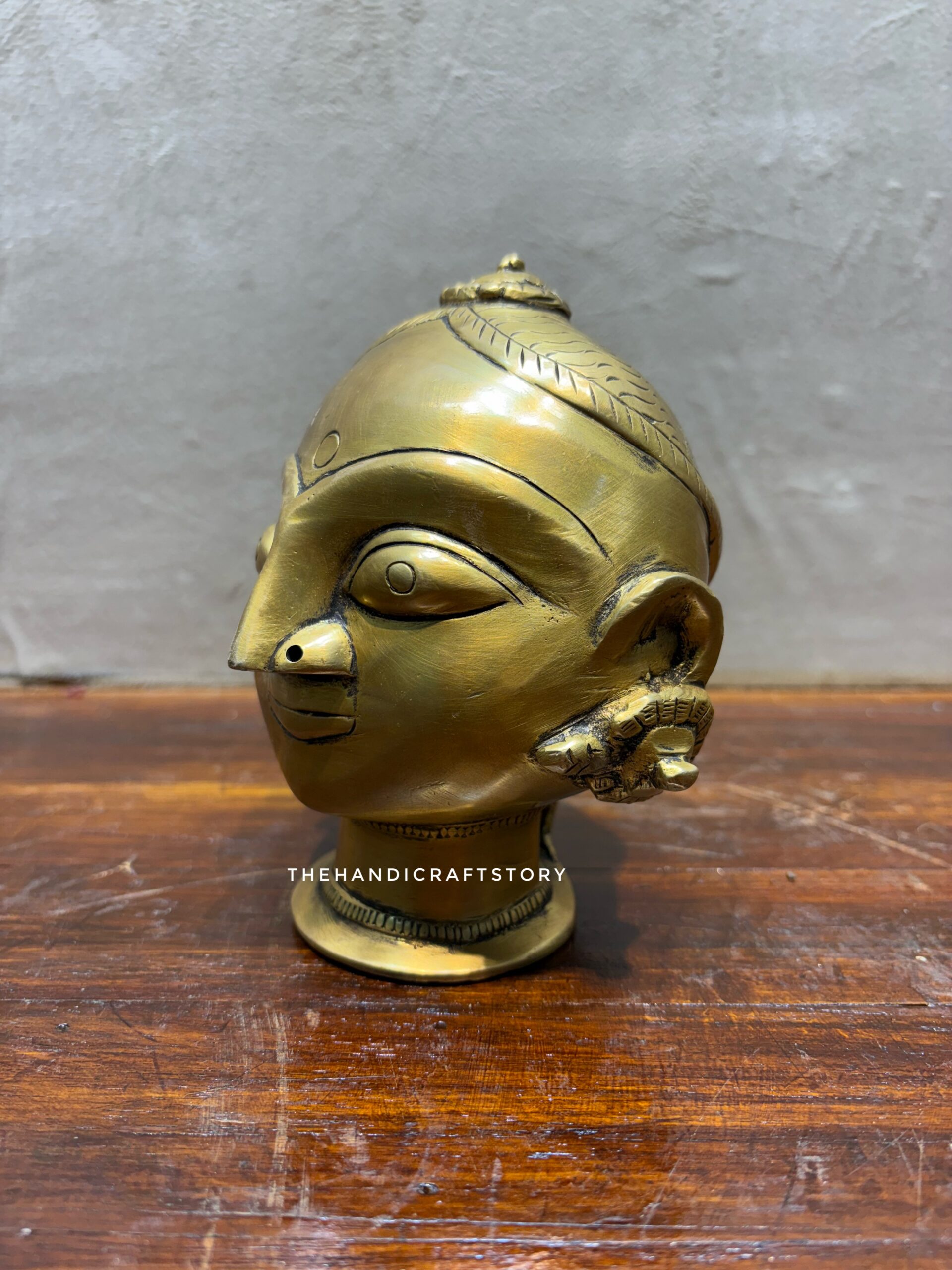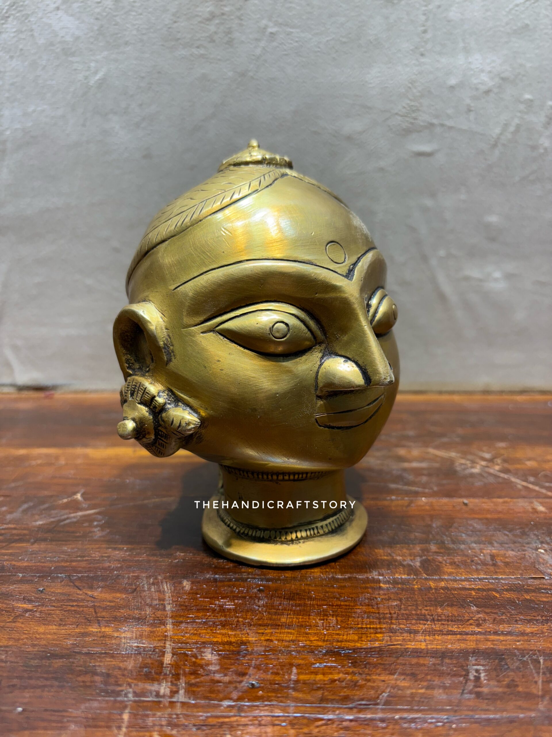 Handcrafted Brass Gauri Head Idol – Traditional Indian Goddess Bust for Home Décor