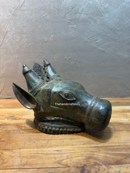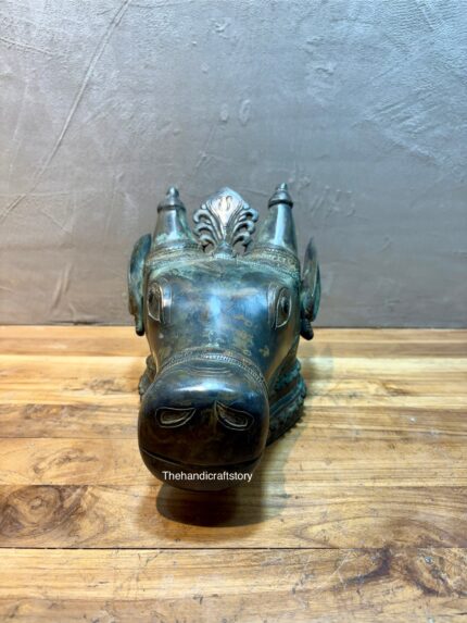 Brass Nandi Head in Vintage Finish – Sacred Symbol of Devotion and Strength