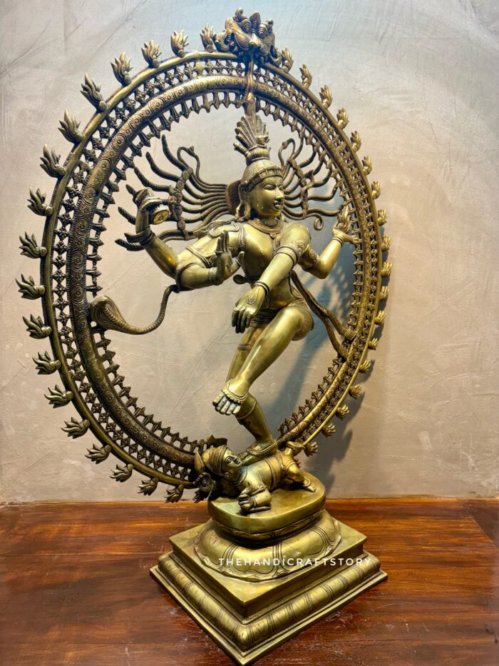 Categories: All Products, Brass Natraj, Brass Shiva, Brass Statues, Home Decor, Large Masterpieces Tags: antique finish natraja, antique golden brass idol, brass natraja idol, brass shiva murti, brass spiritual decor, cosmic dancer sculpture, hindu god sculpture, home temple decor, large brass shiva idol, lord shiva statue, natraj dancing form, natraj idol for pooja, natraja statue big size, shiva dancing idol, traditional indian decor, vastu shiva idol, yellow golden brass statue, yoga room statue Brand: The Handicraft Story