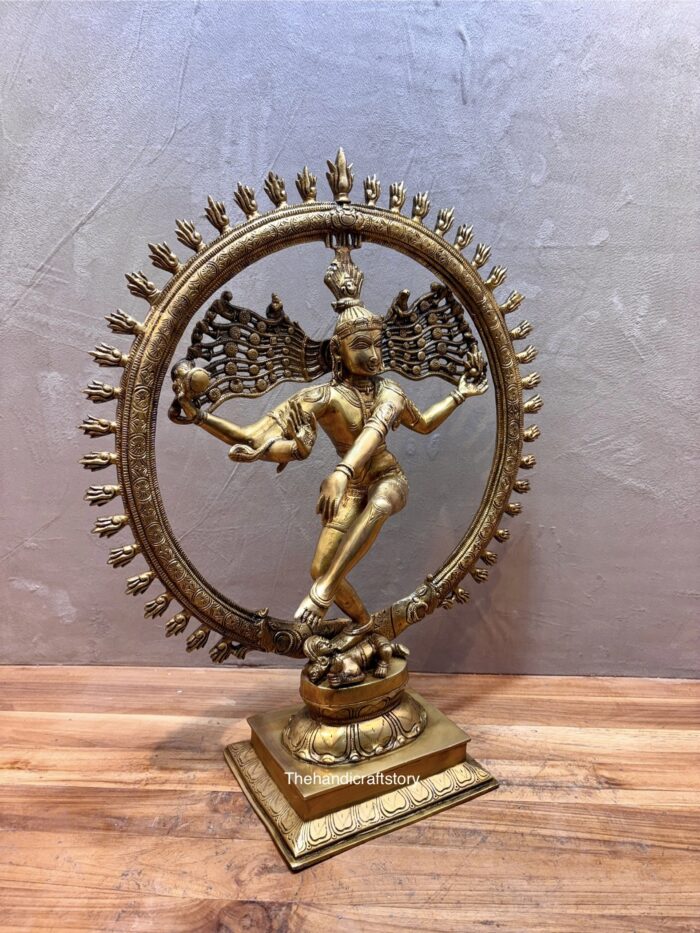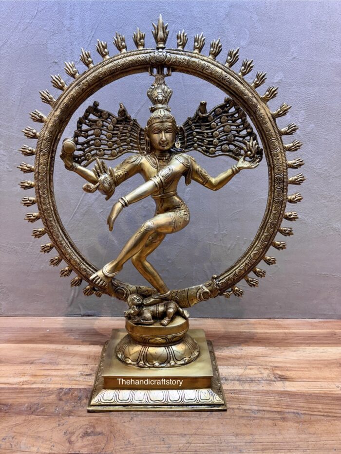 Categories: All Products, Brass Natraj, Brass Shiva, Brass Statues, Home Decor, Large Masterpieces Tags: antique look nataraja idol, brass hindu deity, brass nataraja idol, brass tandava statue, classical dance statue, cosmic dance idol, dancing shiva murti, divine dance sculpture, golden antique shiva statue, handcrafted shiva idol, hindu brass sculpture, lord shiva nataraj, nataraja in brass, pooja room decor, spiritual brass decor, thehandicraftstory nataraja, traditional indian art, vastu shiva idol Brand: The Handicraft Story